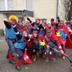 Unter diesem Motto zogen am Karnevalsdienstag jecke SuperheldInnen in rot und blau durch die Straßen in Ehrenfeld. Am Straßenrand hatten sich trotz grauem Himmel und Regenschauern wieder viele Jecken versammelt und die Stimmung war bei allen fantastisch. Alle freuten sich über die geworfenen Kamelle und Strüßje und bestaunten die bunten Kostüme.